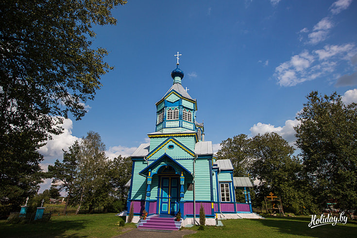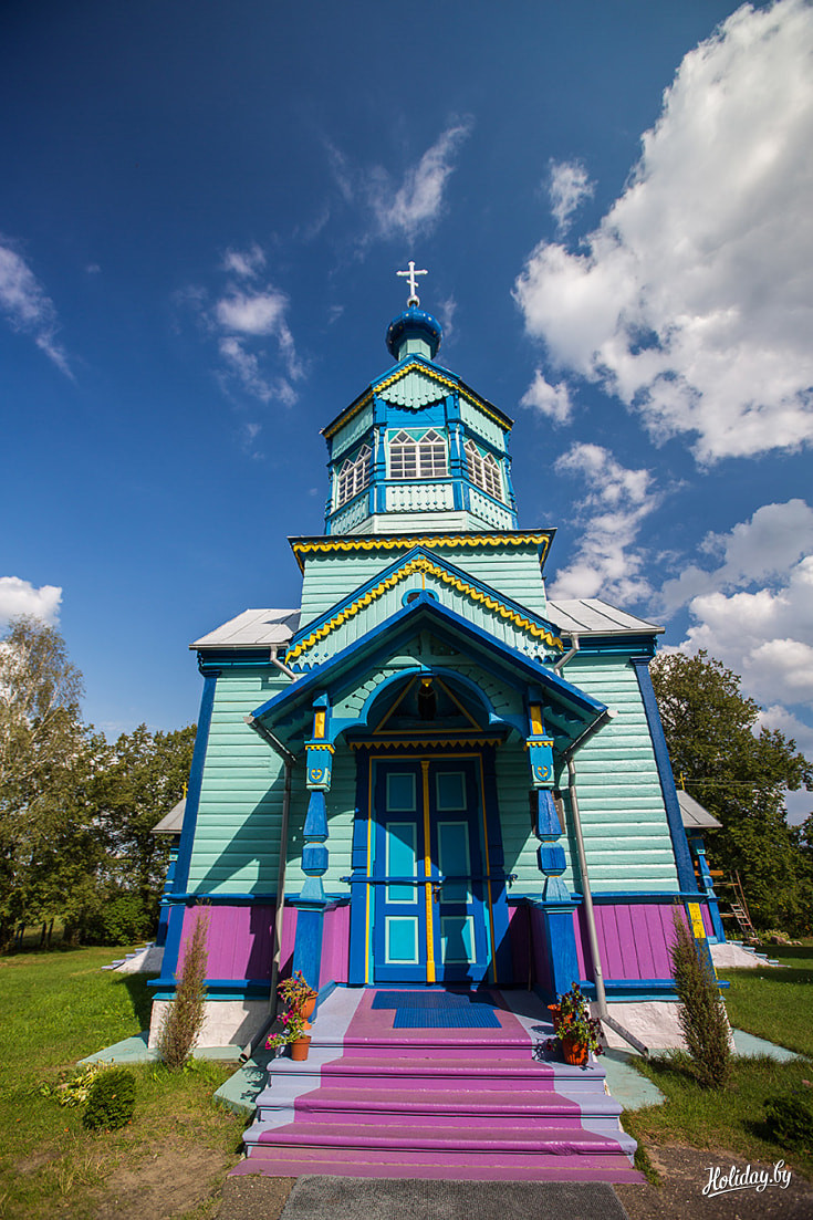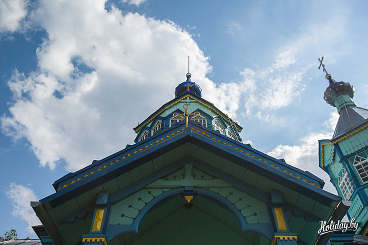 Деревянная церковь была построена в начале ХХ века и сохранилась до наших дней в первозданном виде. Благодаря пестрому окрасу она сильно выделяется на фоне городских построек. Если будет возможность, то зайдите в покровскую церковь. Купол храма завораживает: он обрамлен небольшими окошками и чуть ниже изображены святые.