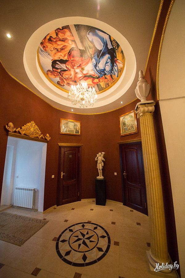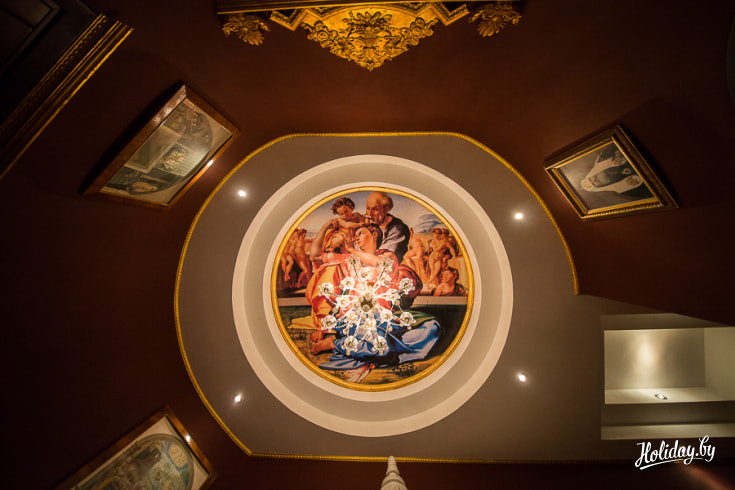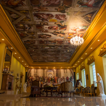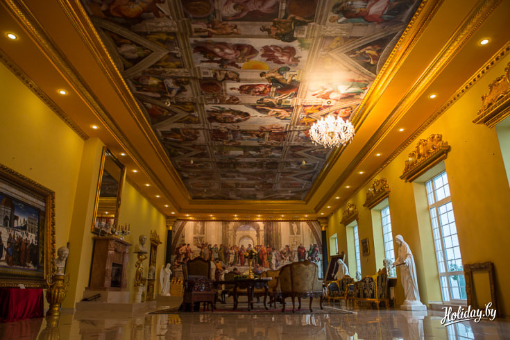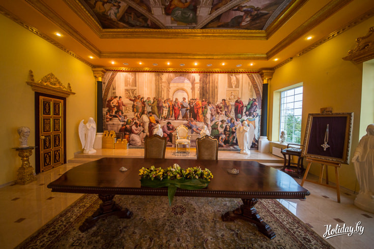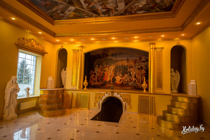 Трехэтажное здание духовно - образовательного центра устроено так, что все помещения отделаны в своей исторической и архитектурной стилистике. На первом этаже в трапезном зале размещена копия Леонардо да Витчи "Тайная вечеря", потолок второго представляет собой копию потолка Сикстинской Капеллы Ватикана, расприсанной великим мастером эпохи Ворождения Микеланджело Буаноротти.