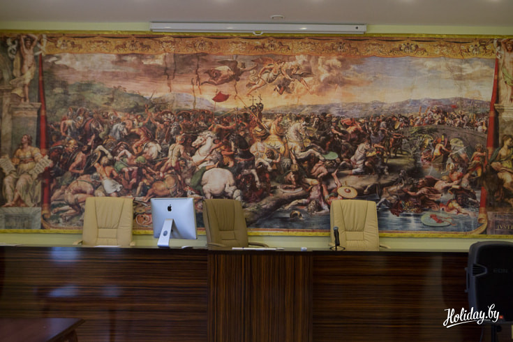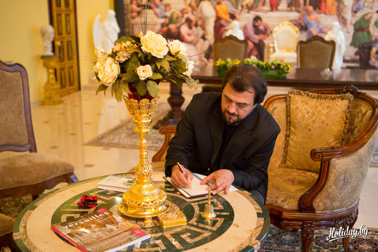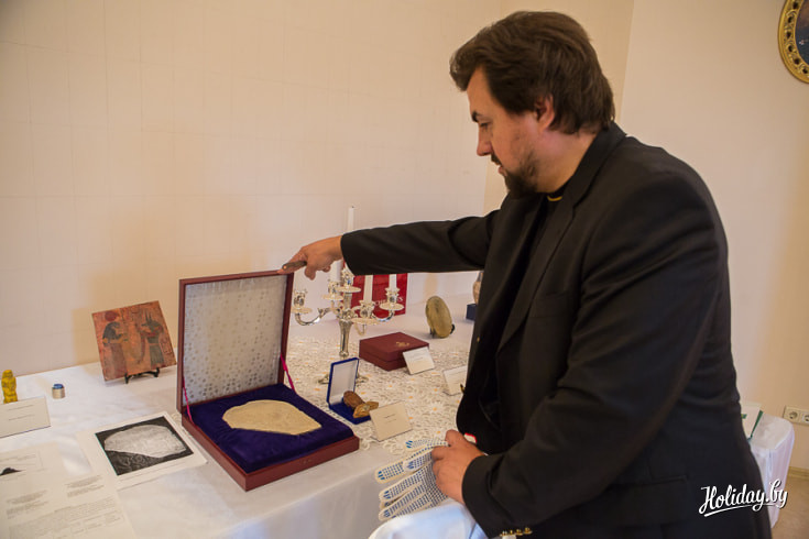 Нам удалось встретиться с настоятелем Покровского прихода — протоиереем Михаилом Понуждаевым, который провел нам экскурсию по Духовно - Образовательному центру. Рядом со Свято-Покровским храмом стоит здание, кнешне напоминающее палаццо Венеции - это Духовно-обазовательный и социально-культурный центр, в котором настоятель решил открыть церковно - археологический кабинет и лабораторию по кафедре христианской антропологии философии института теологии БГУ.