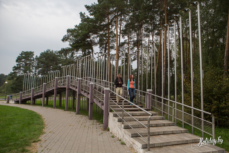 В этом же парке находится самый большой фонтан Солигорска. Местные рассказали, что это уникальная конструкция, аналогов которой нет в Беларуси. Дело в том, что фонтан спроектирован таким образом, что 740 струй воды бьют на высоту 20 метров. Вечером водную феерию подсвечивают восьмью десятками фонарей.