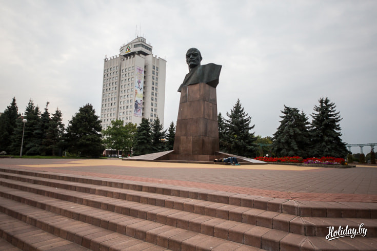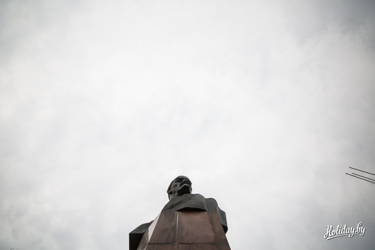 Аллея «четырех стихий» вывела нас на центральную площадь, украшенную бюстом Ленина на трёхметровом постаменте из мрамора. Есть сведения, что это последнее изваяние вождя, выполненное советским скульптором Андреем Бембелем, который специализировался на памятниках Ленину.