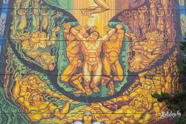 Монументальное панно на религиозную тематику — то, что никак не ожидаешь увидеть в Солигорске. «Древо жизни» находится на стене дома номер 65 по улице Заслонова. Со временем огромная мозаика обросла легендами. Одни говорят, что в изображении зашифровано некое таинственное послание для «посвященных». Другие, что данное изображение обладает сильной потусторонней энергетикой, и для зарядки своих сил к ней периодически прикладываются местные экстрасенсы.