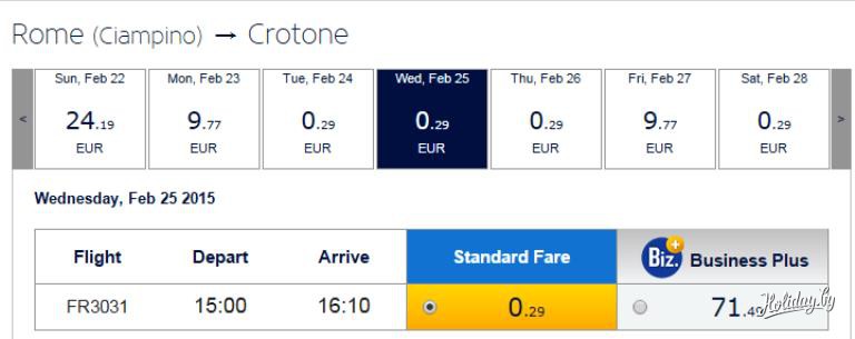 Купить билеты по выгодной цене можно на сайте авиакомпании на февральские и мартовские даты. Из Рима есть возможность улететь в Кротоне и назад. По низким ценам можно также вылететь из Пизы в Кротоне и назад.
