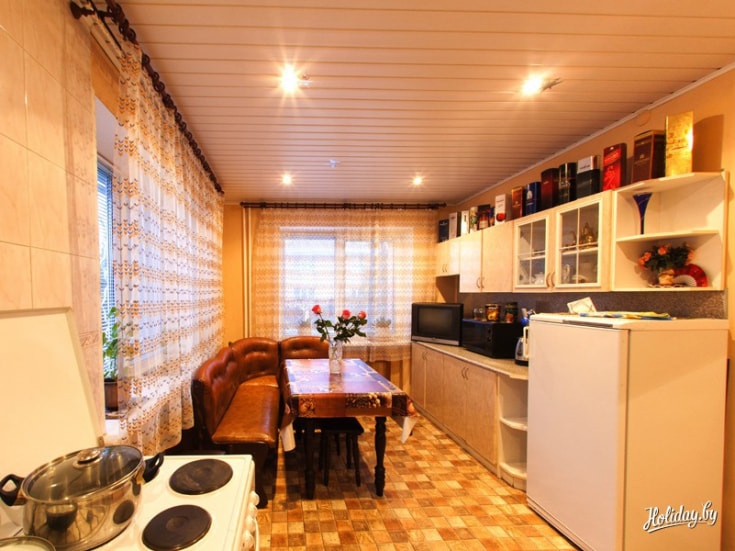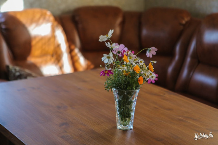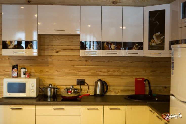 Насладиться отдыхом в коттедже под Минском смогут до 8 человек ― именно столько вмещает уютный деревянный дом. В доме 2 этажа. На первом находится просторная гостиная, кухня, большой стол. Здесь можно приготовить вкусную еду и вместе с друзьями полакомится блюдами. А если захочется повеселиться ― включайте музыку и танцуйте до упаду! Места здесь хватит всем. Второй этаж дома предназначен для сна: здесь расположены 4 спальни в каждой из которых есть двухместная кровать.