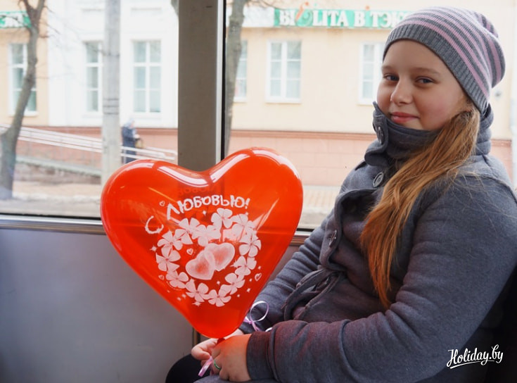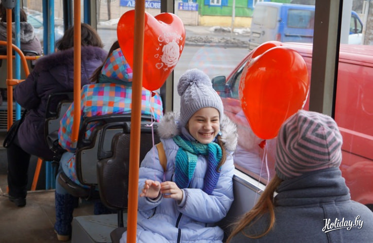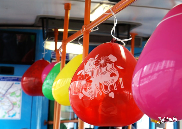 В честь Дня святого Валентина по улицам Минска разъезжал необычный трамвай, украшенный внутри разноцветными шарами, который придерживался своего персонального маршрута. Да и пассажиры в нем находились далеко не простые. Турфирма «КолорЛэнд» сделала своим клиентам небольшой подарок ― экскурсию под названием «Трамвайчик для влюбленных 14 февраля».