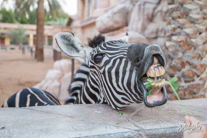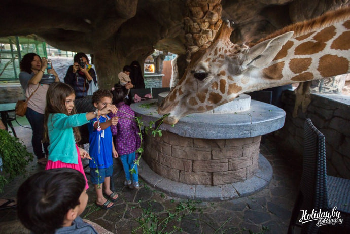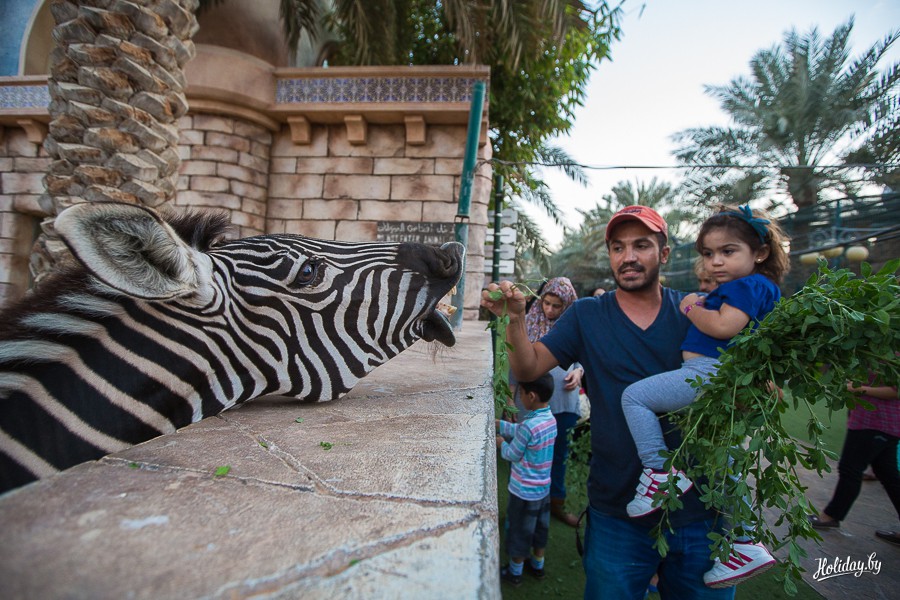 Emirates Park Zoo единственный на Ближнем Востоке зоопарк, в котором можно не только посмотреть на животных со всего мира, но и покормить их, а также принят участь в других уходах за домашними животными. За $3 здесь продают пучки с травой. Самые наглые — жирафы и верблюды, увидев у посетителей зелень, они всеми усилиями попытаются её у вас забрать.