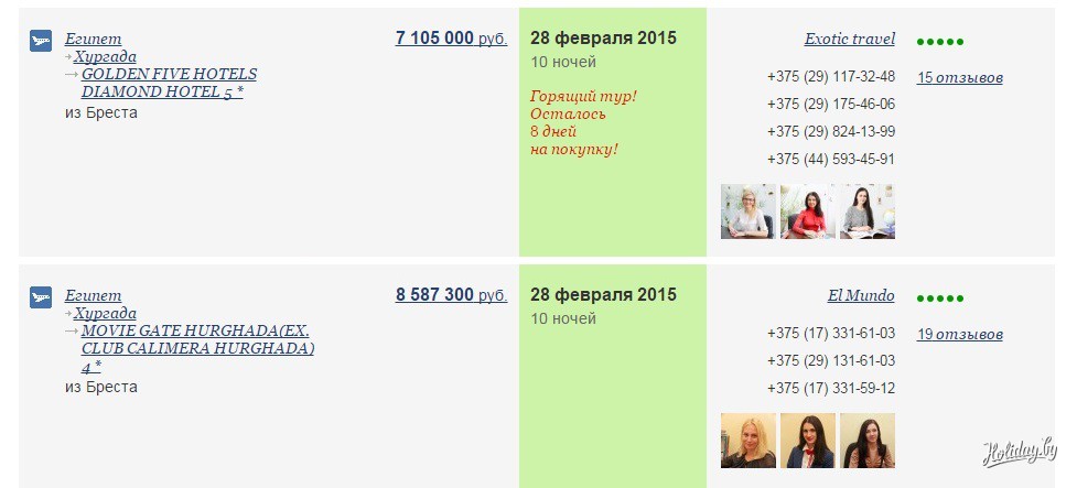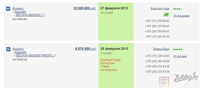 Holiday.by сравнил цены и оказалось, что тур на 10 дней в Египет из Бреста сопоставим с путевкой на 7 дней из Минска.