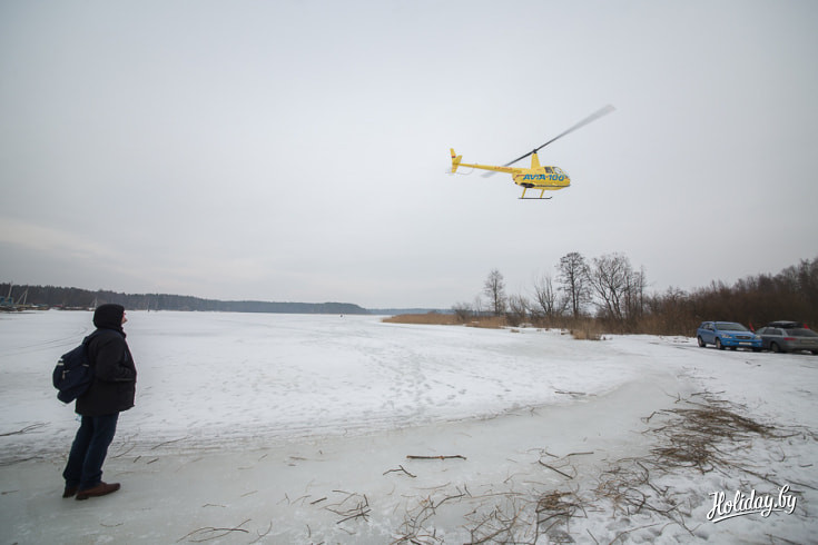 В «Экспедиции» праздновали Масленицу не только на суше, но и в воздухе. На экскурсионном Robinson R44 за 350 тысяч можно было полетать над Логойском районом.