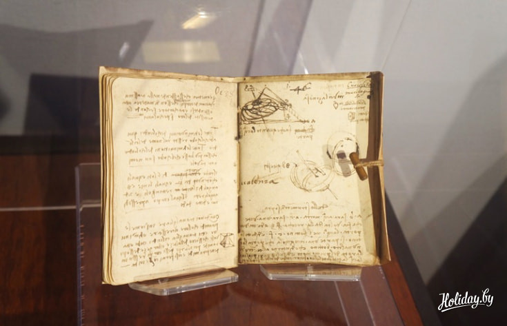 Здесь нет работ, сделанных руками ведущего мастера. Все экспонаты воссозданы итальянскими ремесленниками в соответствии с рукописями Леонардо. Специалисты изучили более шести тысяч страниц рукописей гения, расшифровали коды и зеркальный способ письма.