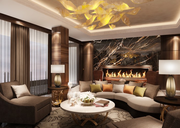 В номере есть огромный камин, джакузи и несколько комнат королевских размеров. Гости имеют бесплатный доступ в VIP-lounge — отдельную зону, в которой есть комната отдыха, бизнес-центр и питание в баре. С 11 этажа, на котором расположены номера самого высокого класса, в фойе спускается отдельный лифт.