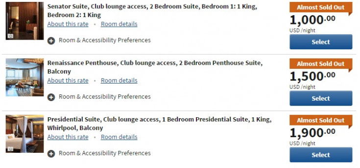 Во время открытия гостиницы, в апреле 2014 года, стоимость Presidential Suite была чуть ниже и колебалась от $1300 до $1600.