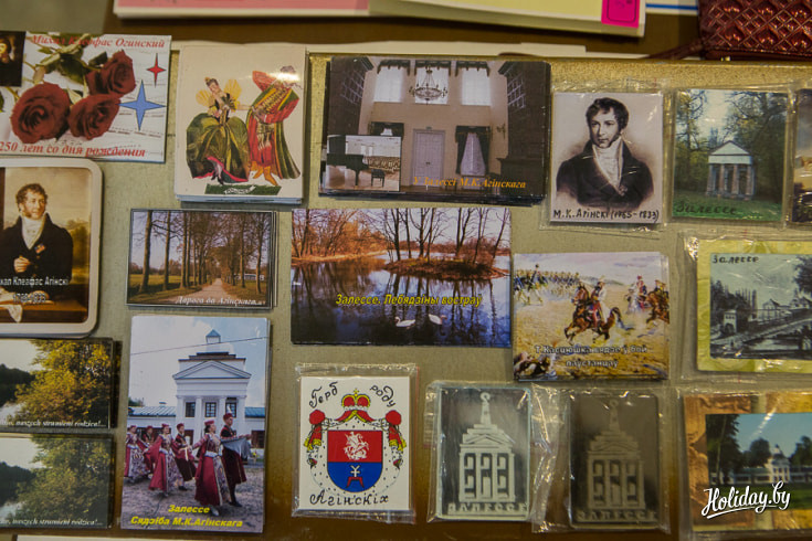 Прямо в здании усадьбы есть сувенирная лавка. Практически вся продукция создается местными мастерами. Здесь можно купить магниты, кружки и музыкальную литературу. Магниты стоят от 10 до 40 тысяч белорусских рублей. Кружки обойдутся в 45-50 тысяч рублей. Книги с нотами — от 55 тысяч рублей.