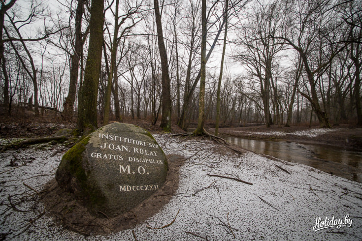 В те времена было модно объявлять о своем почтении учителям и уважаемым людям с помощью надписей на камнях. Михаил Клеофас Огинский установил на территории усадьбы два таких камня. Один из них посвящен повстанцу Тадэвушу Касцюшке, а другой — учителю Жану Рылею. Оба камня сохранились на территории усадьбы Огинского.