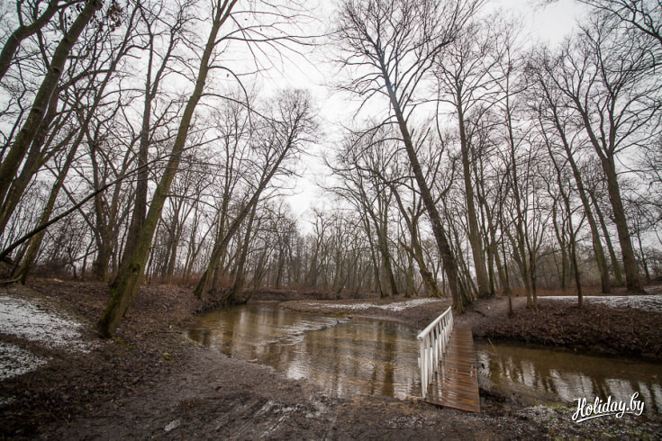 «В центре парка находится мост. В XIX веке он был двухэтажный, разделял две речки Рудицу и Бобринку. Второй этаж служил обзорной площадкой. Здесь Огинский, его семья и гости наблюдали за животными в самостоятельно созданном зоопарке, — говорит директор музея-усадьбы. — Причем, в вольерах жили дикие животные, а на воле лани и павлины. Немного поодаль есть пруд. На нем находится Лебединый остров. Неспроста, с еще со времен Огинского Залесье за его красоту называют «Северными Афинами».