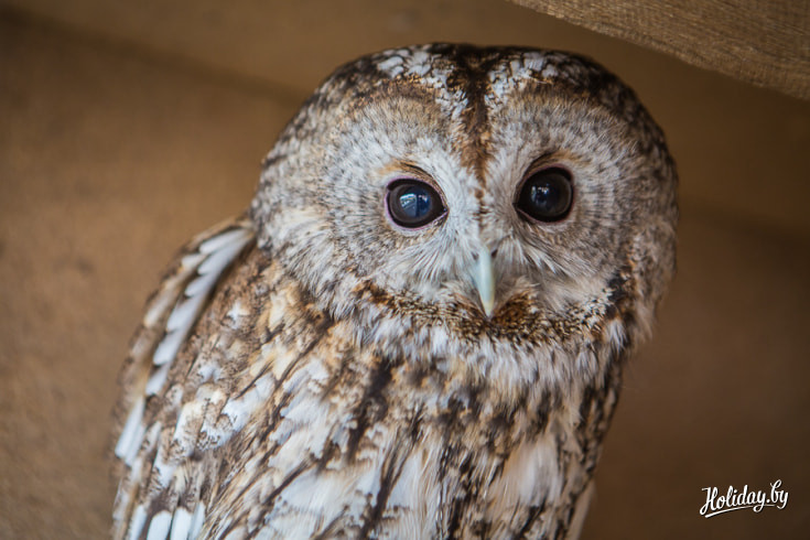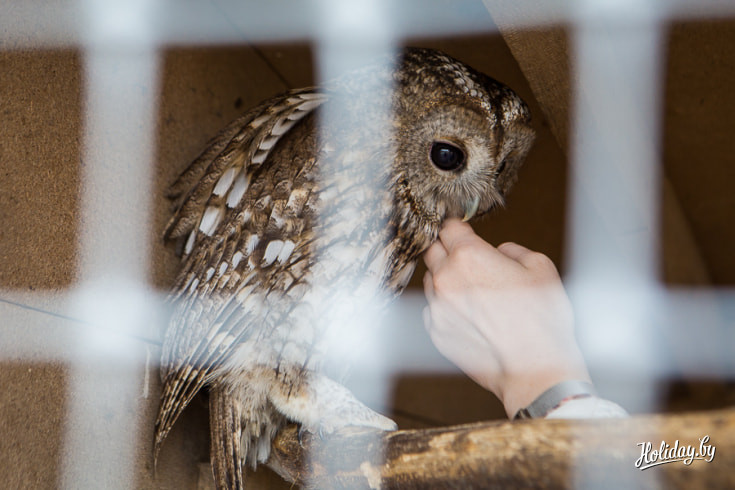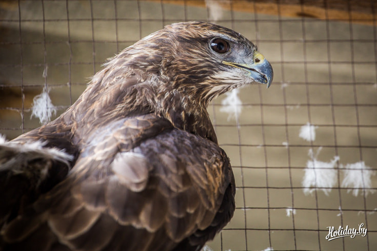 В самой большой клетке живет охотничья птица — канюк. Его принесли усадьбу с подбитым крылом. После лечения хищника отпустили на волю. Но птица вернулась в «Мазычи» и сидела на клетке до тех пор, пока её не впустили обратно. Семья решила: «Пусть живет у нас».