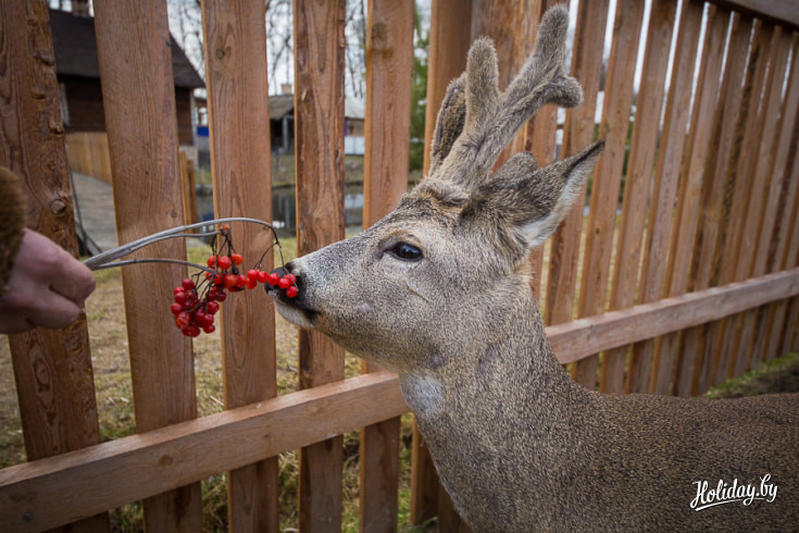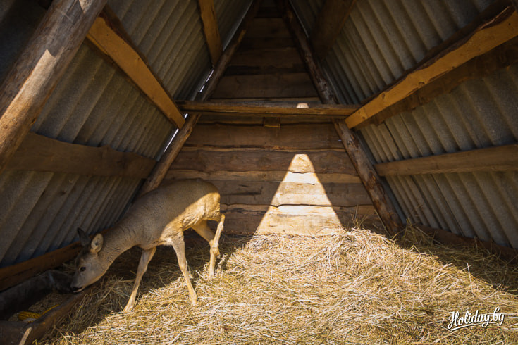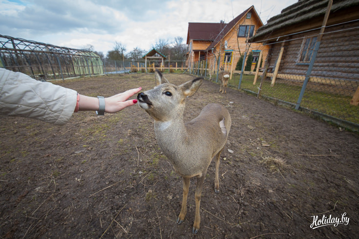 Косули, которых, кстати, три, свободно разгуливают по территории усадьбы. Животные очень хорошо идут на контакт и дают себя погладить.