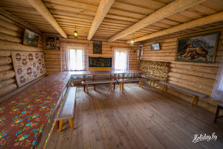 Оба гостевых домика с печным отоплением, рядом с каждым — беседка и мангал. Интерьер очень простой, удивит он преимуществеено европейских туристов, гостям из России напомнит домик бабушек и дедушех.