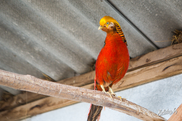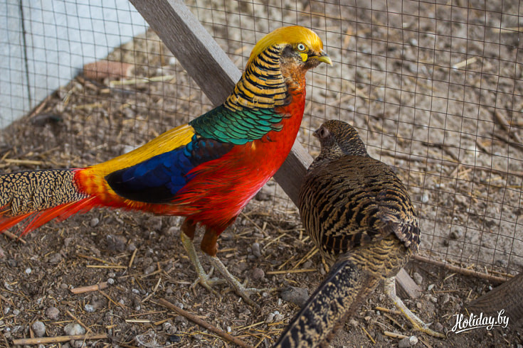 В отдельном вольере держат фазанов. Их у Марии несколько разновидностей: алмазный, золотой и лимонный. Стоит парочка (самец и самка) около 120 долларов.
