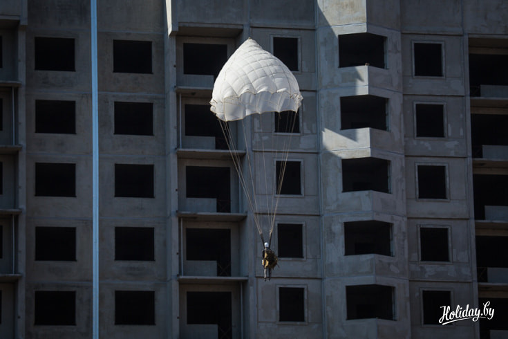 Испытания парашюта Леонардо да Винчи проводились за всю историю изобретения всего дважды: в Великобринаии и в Англии. Белорусские организаторы не решились отправлять на эксперимент живого человека. Миссия проверки изобретения была возложена на хрупкие плечи небольшого манекена весом в 20 килограмм. Сам парашют, на создание которого ушло 4 дня, все-таки не стал абсолютной копией задумки Леонардо. Его значительно уменьшили и сделали не из парусной ткани, как задумывал автор, а из современного парашютного материала. Зато пирамидальные пропорции были соблюдены.