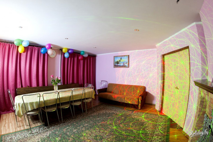 Коттедж «У Рапана» находится практически в центре столицы, около одной их интереснейших достопримечательностей Минска ― Национальной библиотеки. Дом небольшой, но уютный и гостеприимный, рассчитан максимум на 12 человек. Есть небольшая кухня, оснащенная современными приборами и техникой, банкетный зал, в доме действует wi-fi, есть спутниковое телевидение. Во дворе дома вы найдете просторную площадку. Здесь можно жарить шашлык, устраивать игры с детьми и просто наслаждаться беззаботным отдыхом в Беларуси. Для иностранных и иногородних гостей организовывается бесплатный трансфер.