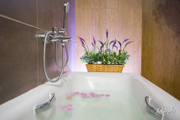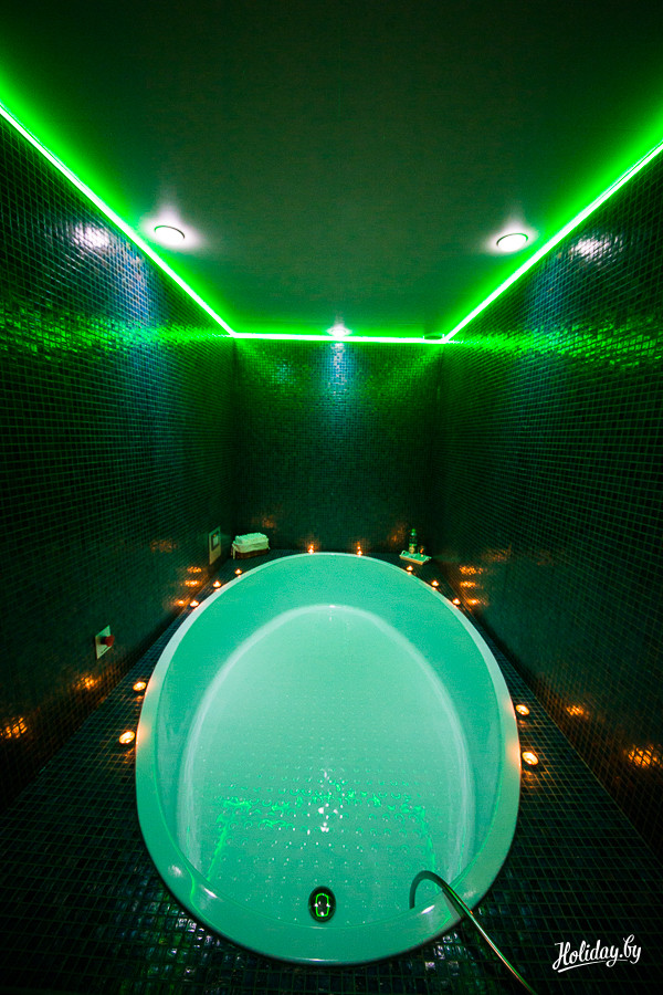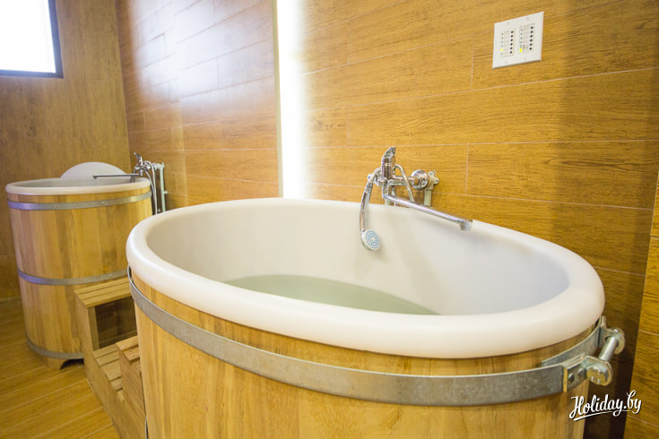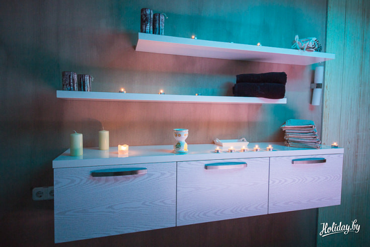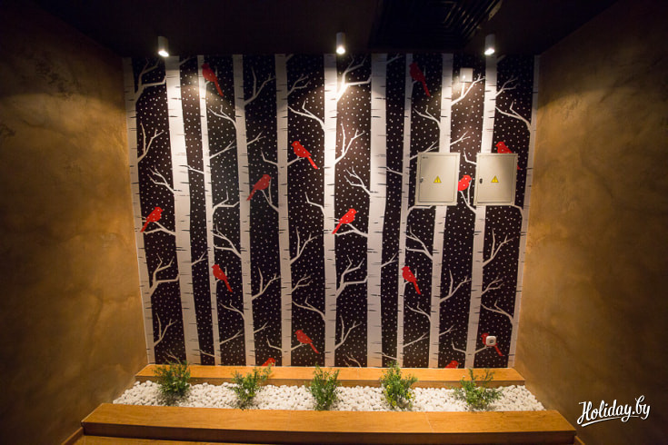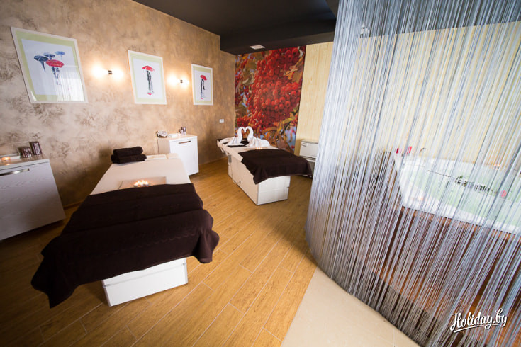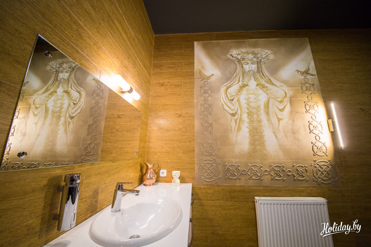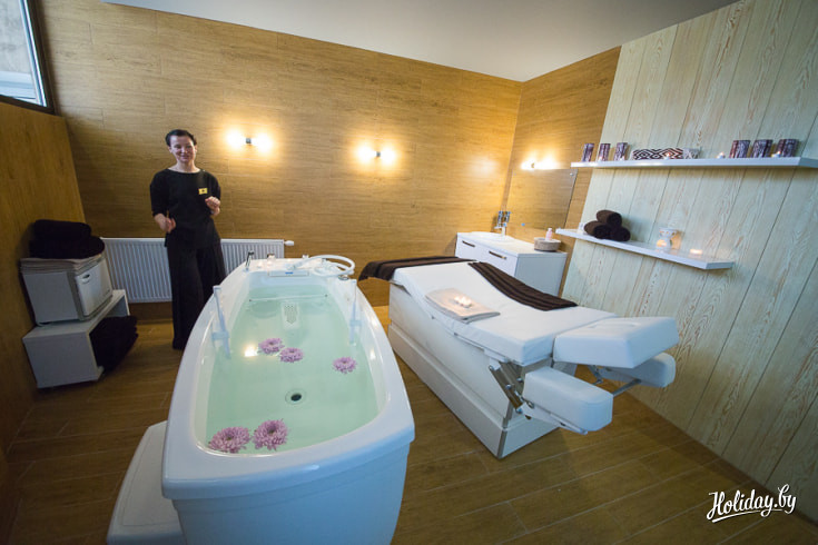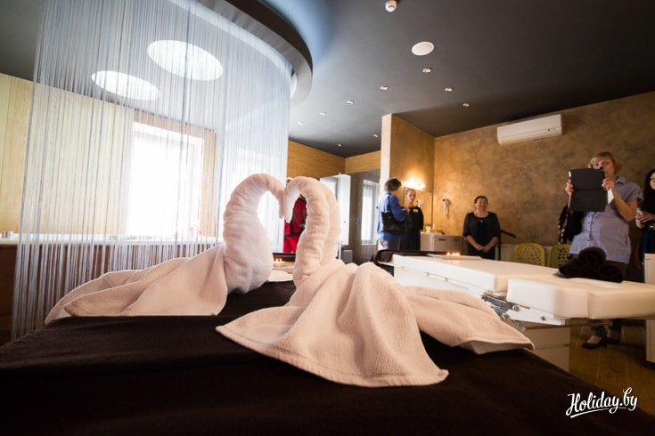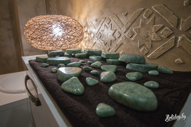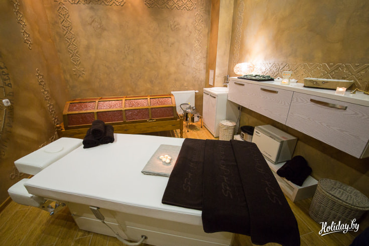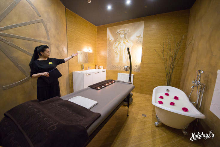 Зона СПА-услуг раскинулась на 3 этажа. Дизайн выполнен в старославянском стиле. Европейская лаконичность и сдержанность хорошо сочетаются с белорусскими акцентами.
