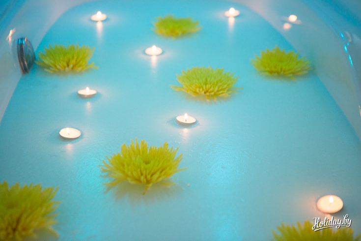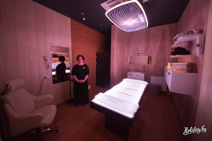 В комнате хромотерапии на водяном матрасе, температура которого равна температуре тела человека, посетителю предложат массаж под лучами полезного для организма света.