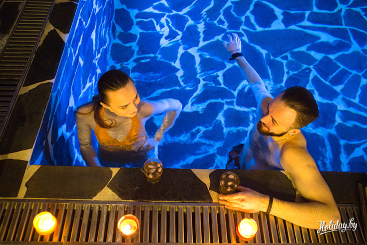 Гости смогут оценить бассейн с подводным гейзером, водяной пушкой и небольшим стилизованным водопадом. Особенно гордятся сотрудники его чистейшей термальной водой, температуру которой можно регулировать по своему усмотрению.