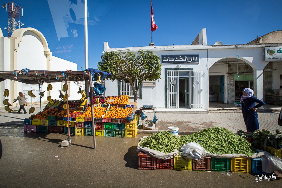 Во время прогулки по курортным городам мы также видели местные тутовые деревья. Их ягоды внешне напоминают нашу ежевику. Из них делают начинку для пирогов, изготавливают вина и безалкогольные напитки. Зато кокосов, бананов, ананасов и киви здесь не растет. Эти фрукты в Тунис привозят.