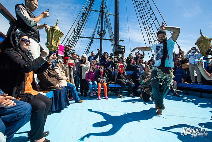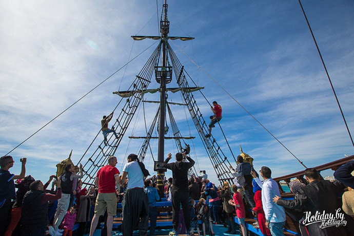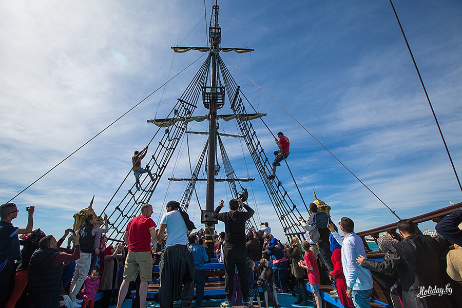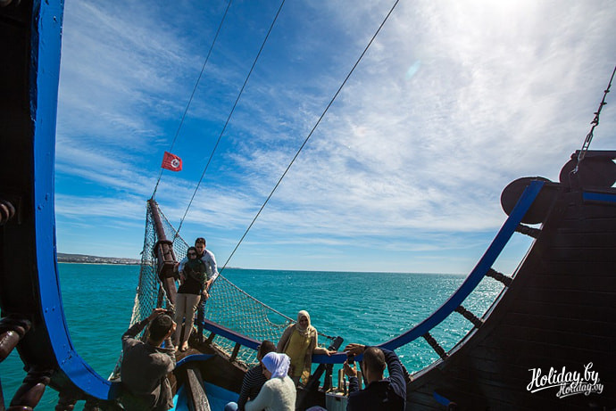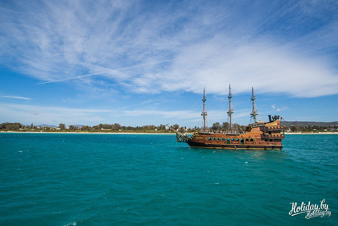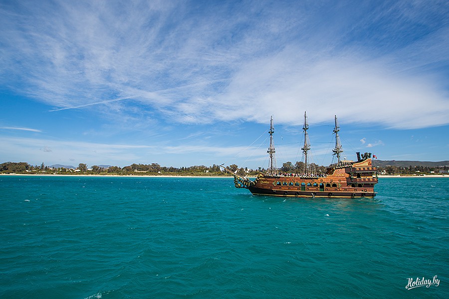Есть в Хаммамете и любимое развлечение туристов — катание на пиратском корабле. Экскурсия длится 4 часа. За это время вам предложат потанцевать с «пиратами», сфотографироваться, отведать морских деликатесов и насладиться шоу-программой от аниматоров. Такое удовольствие обойдется в сумму около 40 динар ($25).