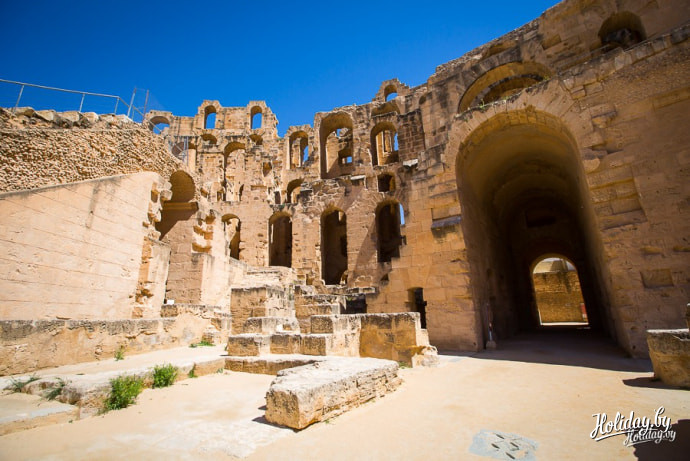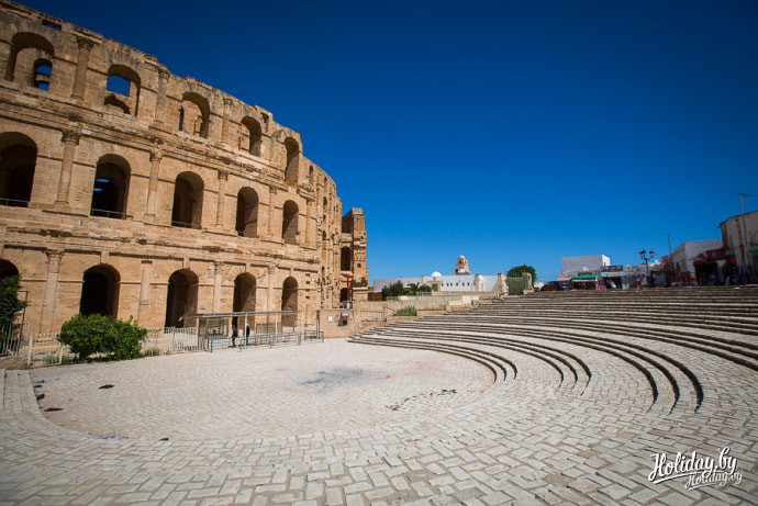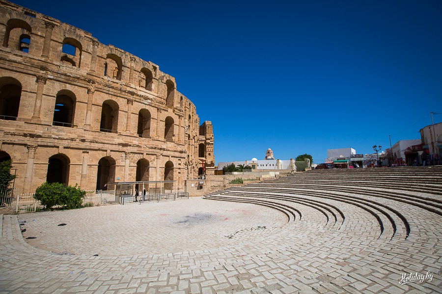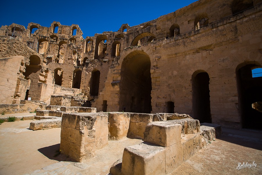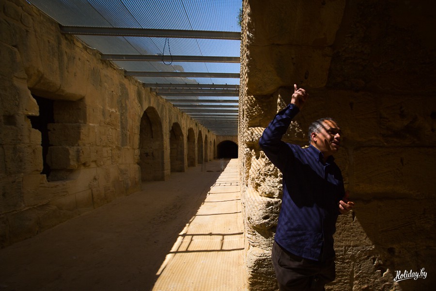 Вы получите колоссальное удовольствие, если прогуляетесь по арочным переходам, постоите на арене и насладитесь ее акустикой. Будет также любопытно спуститься в подземные помещения. Как рассказал наш гид Сэми, здесь в ожидании боев содержались гладиаторы и дикие животные. Бедные люди были обречены на смерть. Они должны были сражаться с диким зверем без помощи оружия…Однако далекие времена прошли, сегодня колизей используется как площадка для международных музыкальных фестивалей и соревнований по бальным танцам. Вход стоит от 10 до 25 динар ($5-13).