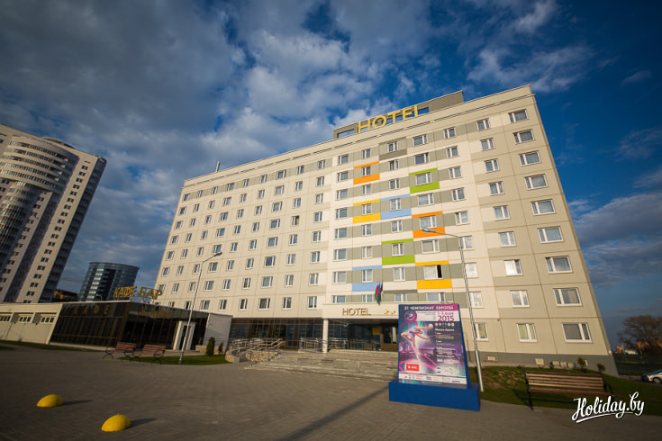 Гостиница гордится своим адресом. Отсюда за 5-10 минут можно добраться до спортивно-развлекательного комплекса «Минск-Арена», Футбольного манежа и Дворца Спорта, а до центра города — всего 15 минут на автобусе. «За умеренную цену мы предлагаем новые, чистые, уютные номера, со всеми условиями для комфортного проживания», — написано на сайте отеля. Wi-Fi в лобби бесплатный, в номерах бесплатный проводной интернет. За парковку автомобиля тоже ничего платить не надо (только желателен предварительный заказ). В общем, достаточно интересное предложение.