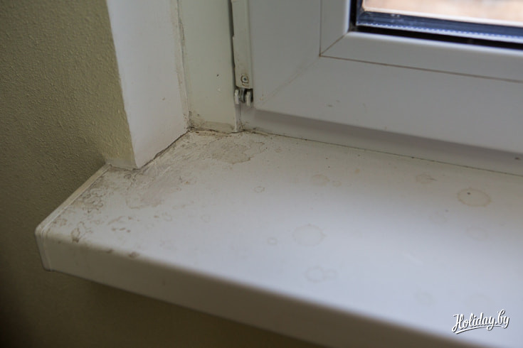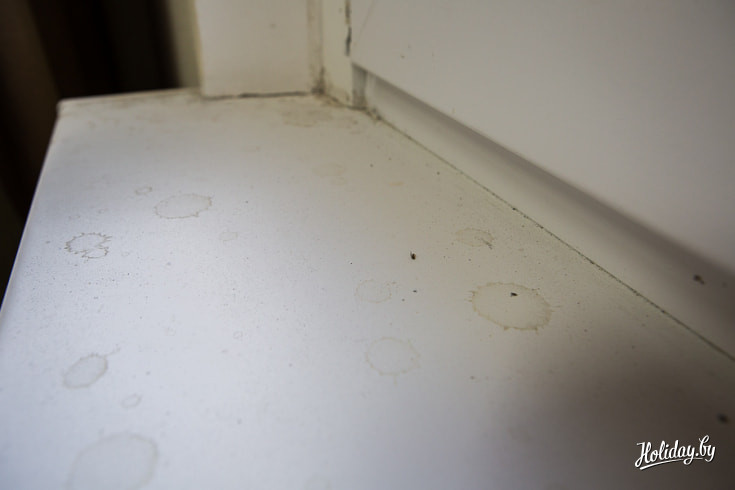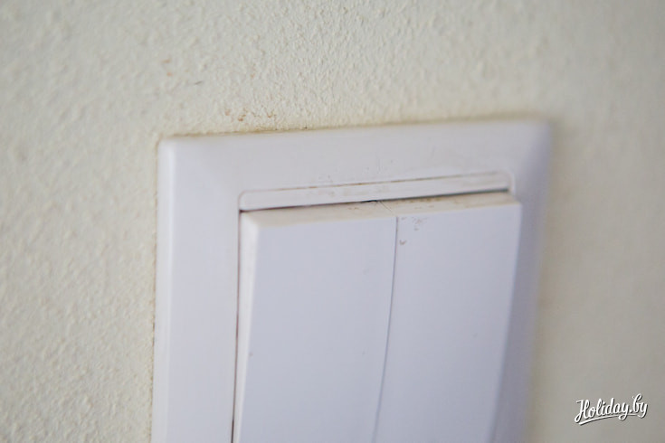 В номере тепло, на полу ковровое покрытие, вокруг много света. Пожарный извещатель и план эвакуации на месте. И все бы неплохо, но мы начали присматриваться внимательнее. Как оказалось, уборка сделана хорошо лишь на первый взгляд. Стол, полки, тумбочки, зеркала являются примером чистоты, однако карнизы не протирали уже давным-давно, некоторые выключатели грязные, а на подоконник и вовсе страшно смотреть.