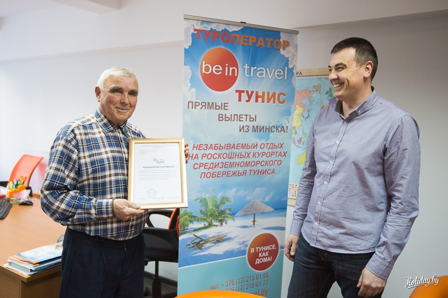 Туроператор по Тунису, компания Be in travel подарила путешествие в Тунис самому догадливому туристу. Победителем стал пенсионер — Валерий Микачев. Именно он максимально точно угадал количество апельсинов, которые находились в тубе.
