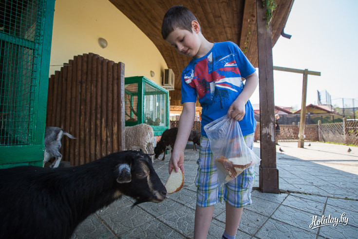 В Минском зоопарке открылась контактная площадка. Теперь в огражденной зоне, стилизованной под старинную усадьбу, можно не только посмотреть на некоторых местных обитателей, но также покормить и погладить их. Большого разнообразия ожидать не стоит. На контактной площадке посетителям удастся беспрепятственно пообщаться только с козочками да барашками. Зато эти животные очень гостеприимны. Людей совсем не боятся и с удовольствием принимают угощения. Кроме того, здесь совсем близко через решетки маленьких клеток можно рассмотреть шелковых курочек, петушков-фениксов, кохинхинов, падуанов и других птиц.