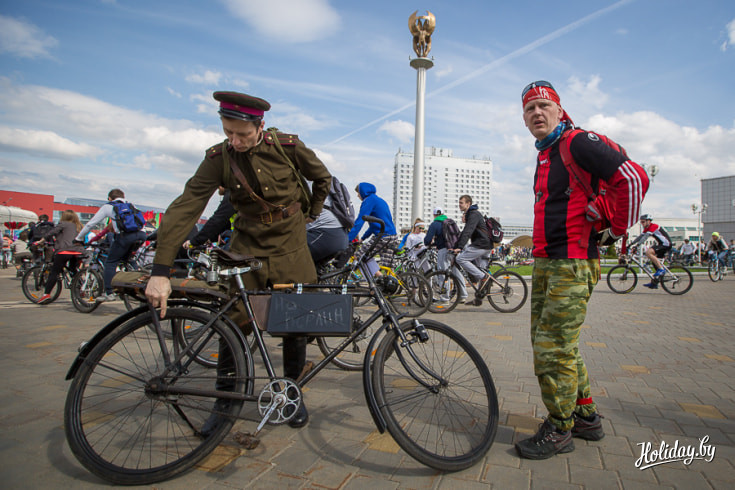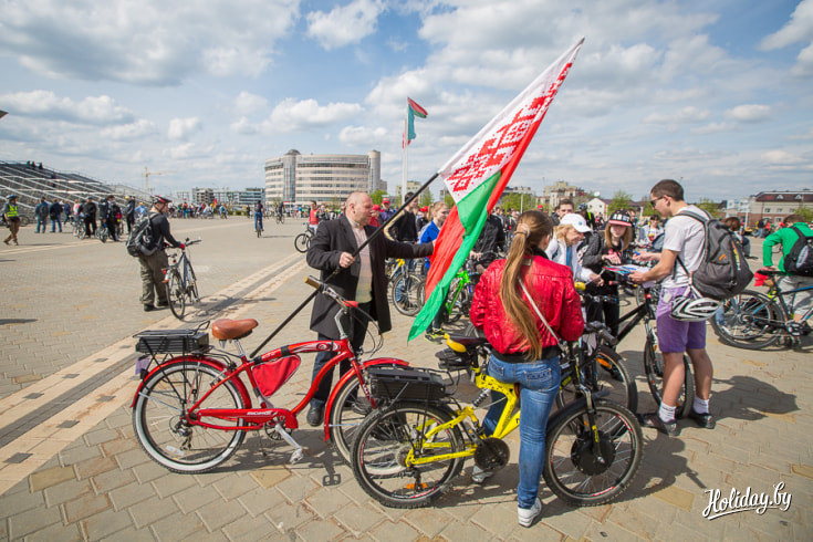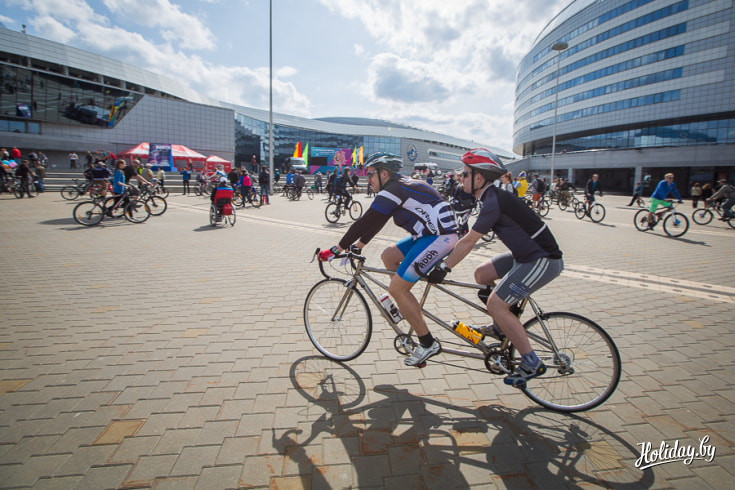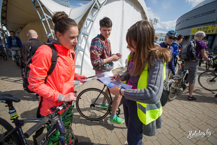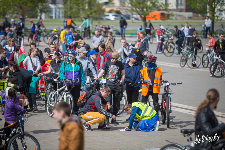 Велосипедисты начали собраться у «Минск-Арены» с двух часов дня. Здесь проходила регистрация участников, концерт и розыгрыш призов. На старте были замечены профессиональные спортсмены, родители с малышами, велосипедисты в вышиванках, герой компьютерных игр Sonik и два гонщика на велосипеде-тандеме. Самый юный участник парада приехал на трехколесном велосипеде.