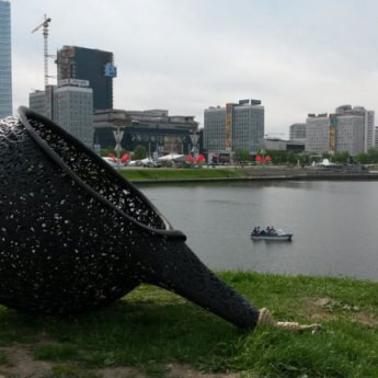 Теперь на набережной Троицкого предместья можно посидеть и немного полежать не только на траве. Здесь появились два больших кресла и кресло-гамак. Сделаны они из базальтового волокна. Для большего удобства рядом расположен небольшой столик.