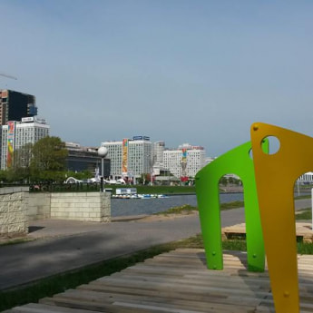 На набережной Свислочи, неподалеку от Троицкого предместья, появились яркие велопарковки, которые подарила студия Артемия Лебедева. Как рассказала порталу «Как тут жить» организатор MDW Елена Карпилова, велопарковки простоят на набережной до 11 мая, а потом их перенесут к кофейне «Зерно», где они навсегда и останутся.