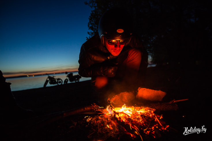 Последнюю остановку сделали на Минском море уже после заката. На путешествие на мотоцикле и правда позволяет увидеть страну под другим ракурсом. Есть возможность почувствовать запах цветущих деревьев, тепло солнечного света и услышать куда больше. Из недостатков можно назвать легкий холод и отсутствие комфорта, но все это в достатке компенсируется ощущениями, которые получаешь во время поездки.