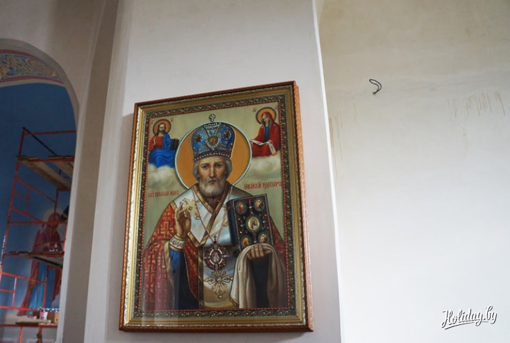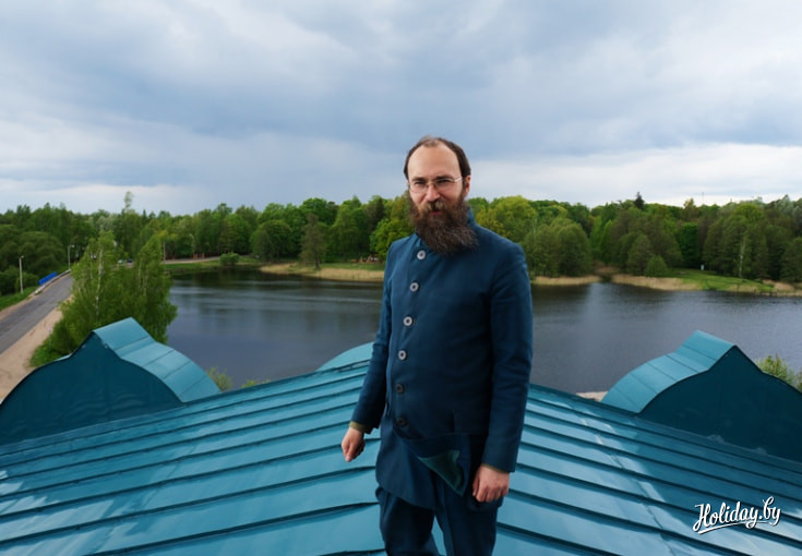 Показать и рассказать нам все и обо всем согласился главный архитектор при Минской епархии и научный руководитель Станьковского дворцово-паркового ансамбля, а также автор проекта реставрации Олег Маслиев, который основательно подготовился к нашему приходу и предстал перед нами в костюме из прошлых времен. От нашего экскурсовода мы узнали, что помимо восстановления беседки здесь проведена и другая большая работа: вновь возведены дубовые мосты, расчищается территория, также была раскопана старинная скамейка, восстанавливается Свято-Никольский храм. К слову, церковь была возрождена из руин благодаря пожертвованию прихожан. Теперь их имена написаны на кирпичах святыни.