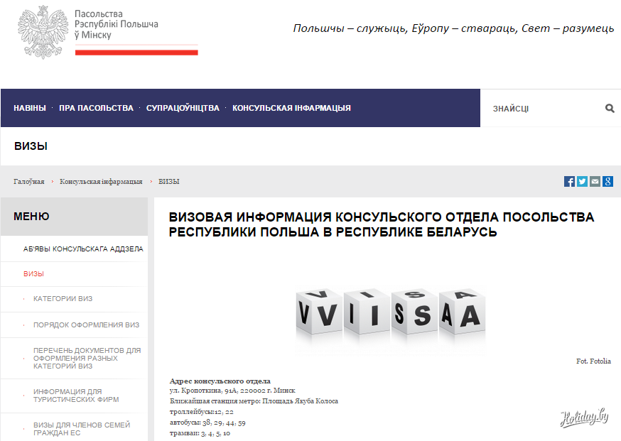 Сайт посольства Польши в Минске обновил раздел с визовой информацией. Сделано это было «для облегчения доступа к информации по вопросам процедур получения виз», — сказано на официальной странице консульства. Теперь у белорусов появились четкие инструкции того, как надо оформлять польский Шенген.