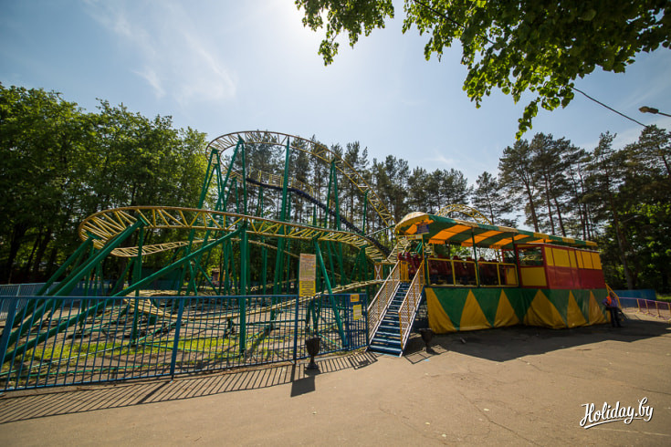 Быстрый, виражный и веселый аттракцион. Вроде бы, и не кажется он экстремальным на первый взгляд, но почему-то очень многих посетителей парка просто силком не затащишь покататься на веселом паровозике. Аттракцион предназначен для взрослых и детей старше 12 лет. За 60 секунд поезд совершает два круга по сложной траектории. Особенно запоминается пассажирам медленный заход состава на подъем и резкий спуск с крутым поворотом. Габаритные размеры аттракциона: 40,9 х 17,3 м. Количество мест: 22.