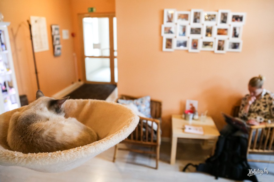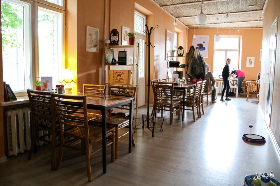 Варвара, Лагуна, Пеле, Багира, Бобас, Симба и компания с нетерпением ждут вас в маленьком кошачьем раю по адресу J. Jasinskio g. 1. Здесь можно выпить американо за €1.49 или капучино за €1.79, можно отведать бутерброд с курицей и медовым соусом за €3.19 или (что особенно интересно) — тирамису в виде горшочка с землей и росточком мяты за €2.39. Выбор достаточно большой. А за дополнительную плату вам предложат купить угощение и для котов. Но это только если повезет со временем, так как персонал тщательно следит за режимом питания своих подопечных и не собирается допускать ожирения мохнатых да усатых своих постояльцев.