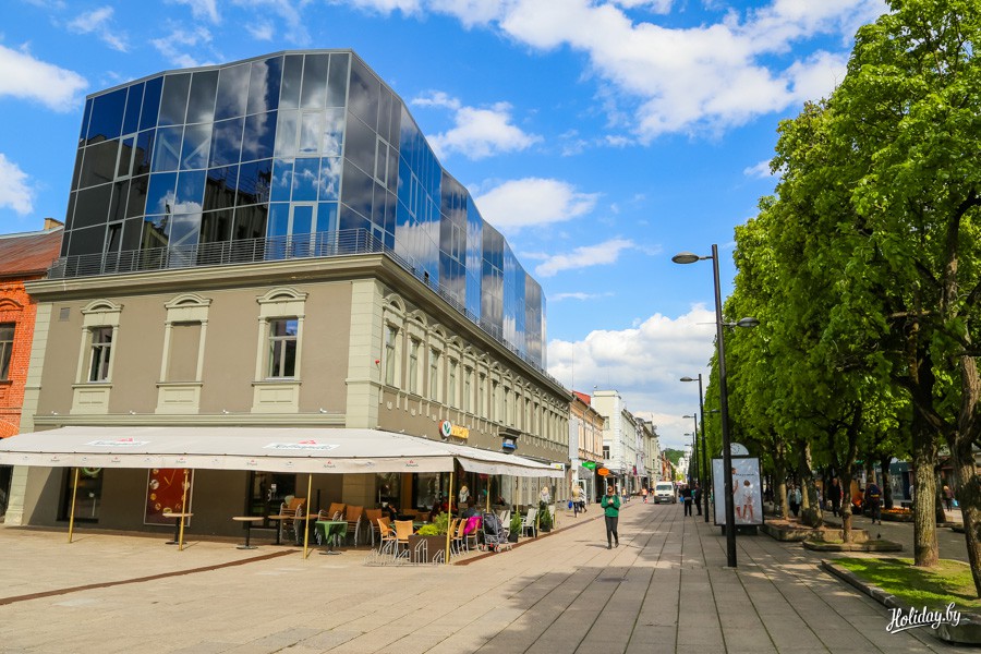Началась наша экскурсия с центральной части города, а конкретнее с Лайсвес аллеи. В проекте Каунаса 1847 года она должна была стать главной улицей города и называться Николаевским проспектом. Свое нынешнее название аллея пригорела 16 февраля 1919 года в честь первой годовщины независимости Литвы. Сегодня длина этой пешеходной улицы 1621 м (рекордная протяженность для всей Восточной Европы). По краям дороги сами горожане высадили 567 прекрасных лип. Аллея соединяет старую и новую части города, а ее начало и конец точно указывают направление с запада на восток.