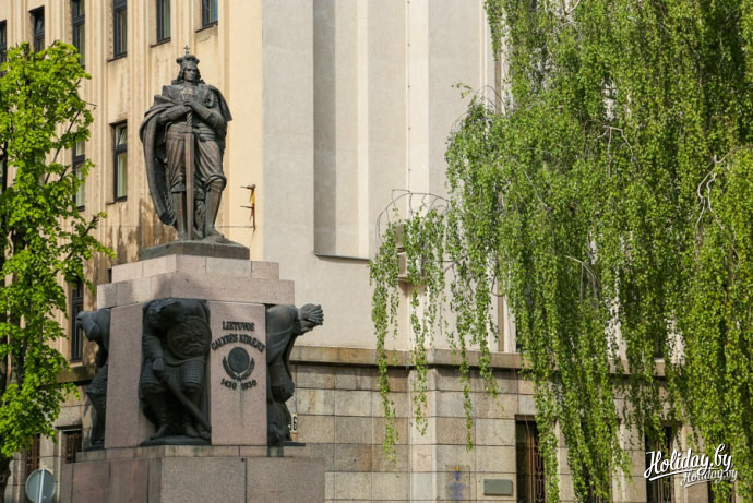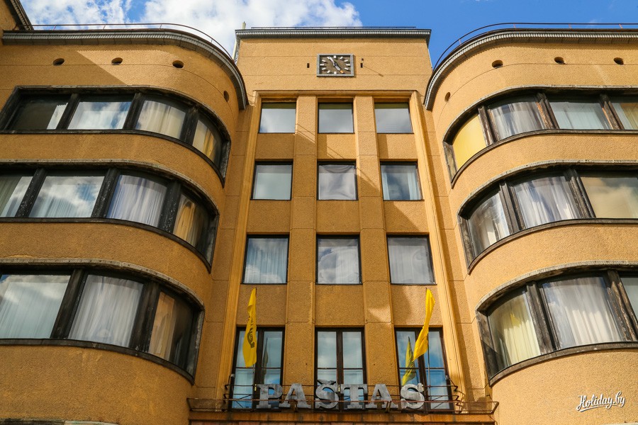 По дороге мы увидели грозный памятник Витаутасу Великому. Это копия того памятника, который был создан скульптором В. Грибасом в 1930 году в честь 500-й годовщины смерти правителя. Удивило нас и здание почты (Laisvės al. 102), выпаленное в необычном стиле.