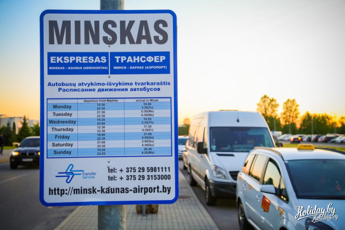 Отправление микроавтобусов от станции метро «Институт Культуры» осуществляется 2-3 раза в день и синхронизировано с расписанием прилётов-вылетов самолётов аэропорта Каунаса. Тем, кто собирается возвращаться из этого города в Минск, необходимо ожидать автомобиль в соответствии с расписанием на специально обозначенной остановке у аэропорта. Стоимость билета — 390 000 рублей. Можно забронировать место онлайн на сайте minsk-kaunas-airport.by или позвонить диспетчеру по телефонам, указанным, на том же сайте.