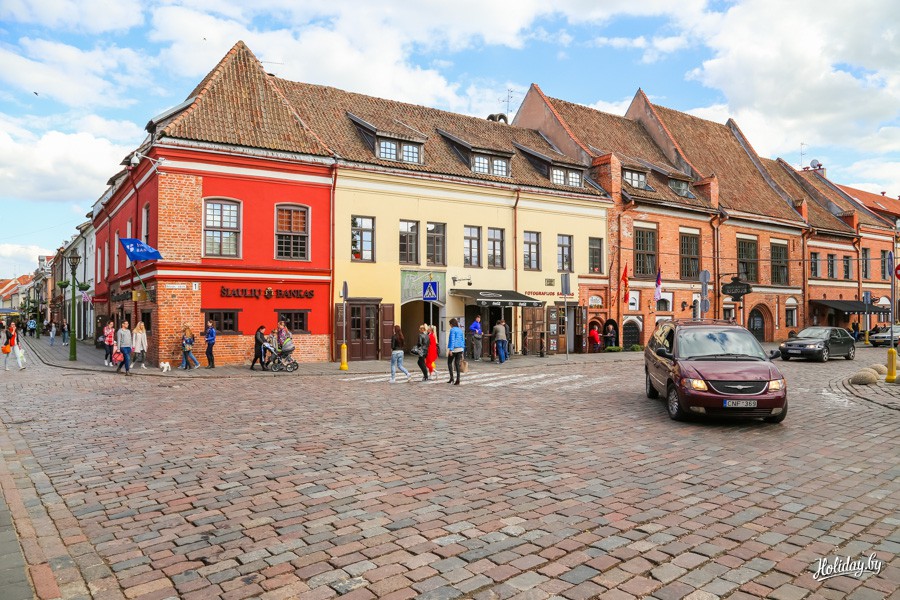 Если по аллее дойти до конца и свернуть на улицу Вильняус (самую старую улицу в городе), можно дойти прямо до старого города и до ратуши. На каждом шагу нам встречались здания, которым тысячи лет. Многие из них выглядят удручающе: обшарпанные стены, обвалившаяся штукатурка и так далее, хотя, на самом деле, есть в этом свое очарование. «Все дело в том, что реставрация у нас — это дело крайне серьезное. Необходимо много сил и средств на восстановление зданий, поэтому все и происходит такими медленными темпами», — объясняет Людмила. Определить возраст строений можно по кладке кирпичей.