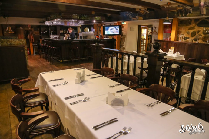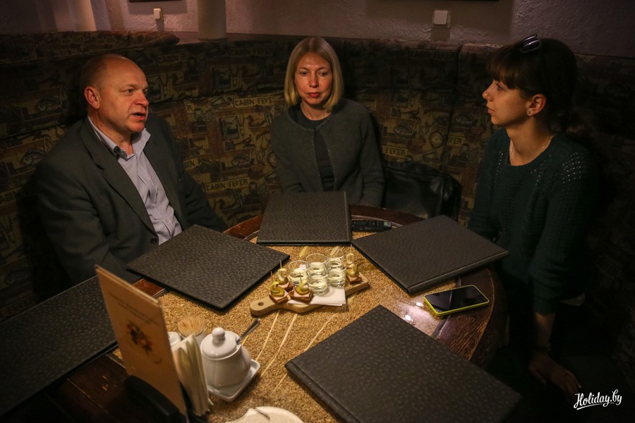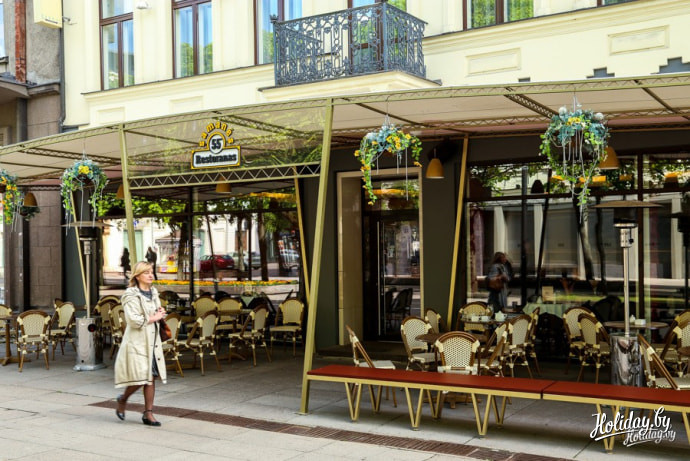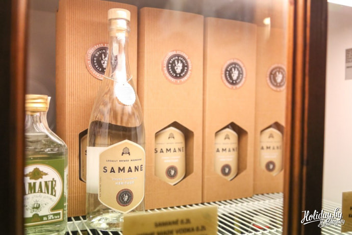 Когда мы немного устали, Людмила подсказала нам хорошую идею, где можно перекусить и отдохнуть, и мы отправились в отель «Каунас» (Laisves av. 79), один из лучших в городе. Нас гостеприимно встретил директор гостиницы, Шарунас Мерецкас, и проводил нас в свой ресторан. Это настоящая гордость отеля. Заведение имеет необычное название — «55 градусов», а все потому, что именно здесь можно отведать настоящего самогона. Это большая редкость в Литве. Готовится горячительный напиток по особым стандартам и получить разрешение на его производство крайне сложно, поэтому тяжело его раздобыть и ресторанам. Помимо литовского самогона мы попробовали здесь вкуснейшие блюда национальной кухни и с удовольствием выпили чашечку кофе, разглядывая аутентичный интерьер этого места.