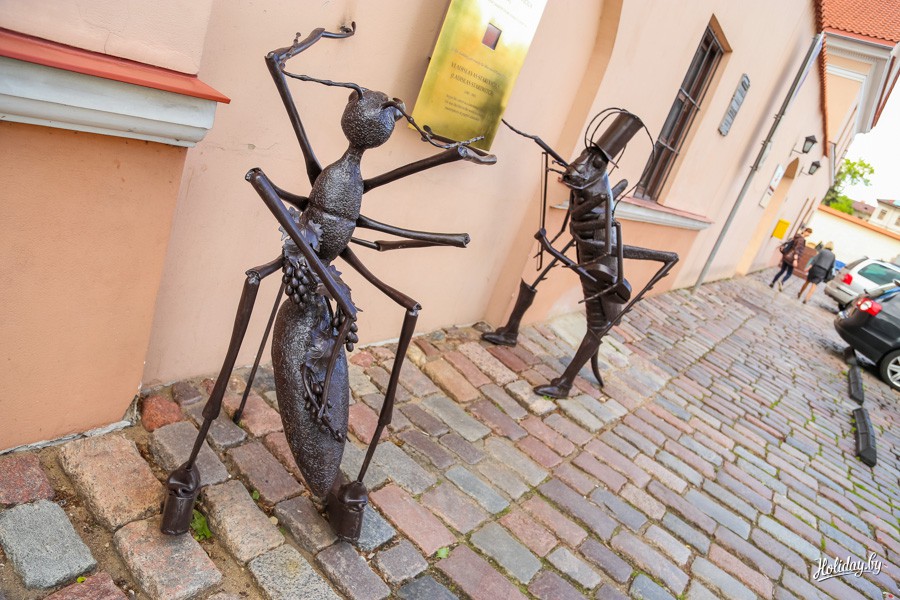 Людмила открыла нам один очень интересный факт. Оказывается, человек, который создал первый в мире мультик, все свое детство провел в Каунасе. Зовут его Владислав Старевич. В честь этого недалеко от ратуши установлена мемориальная доска и скульптуры мультипликационных персонажей. Кстати, прямо на стене любой желающий может посмотреть тот самый первый шедевр.