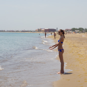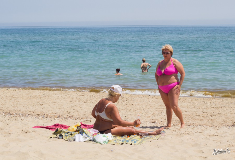 Вход в море пологий, на пляже мелкий песок с ракушками. Море в этом сезоне теплее обычного.
