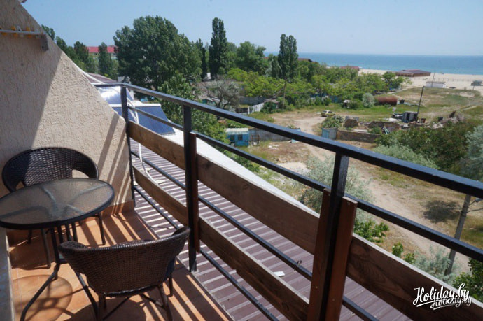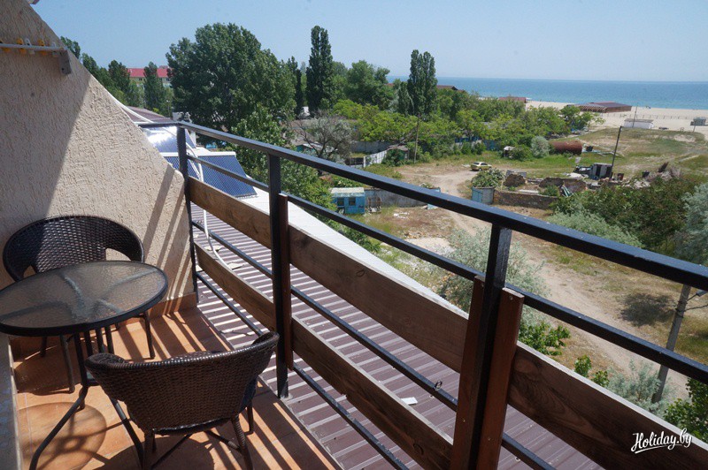 Пансионат расположен в 100 метрах от пляжа. На его территории работает салон красоты, сауна с бассейном, бильярд, настольный теннис, охраняемая автостоянка, бар-ресторан. В этом сезоне обновился детский уголок, в планах нанять аниматора.